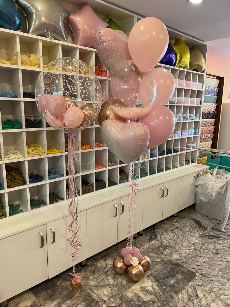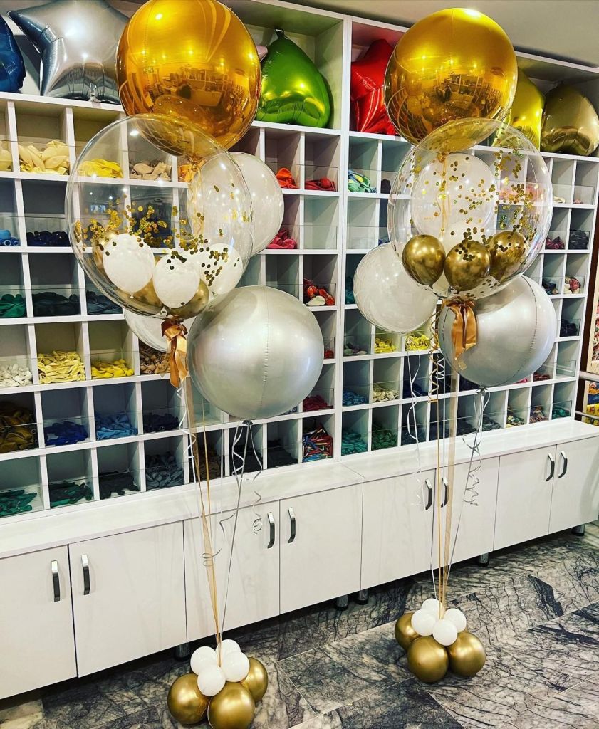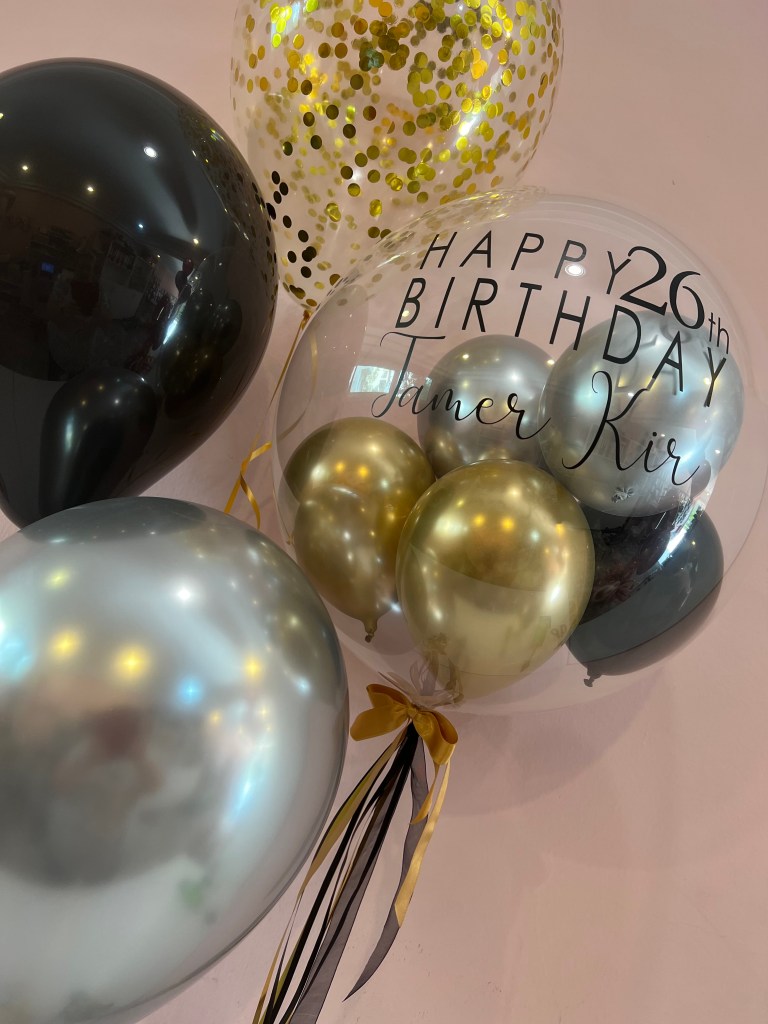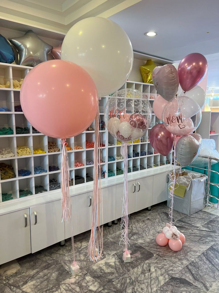 These elegant bubble balloons are sure to impress your loved ones! This unique bubble balloon features several small latex balloons inside it and is tied to a tassle with a matching balloon weight. Great for birthday, newborn, baby shower or special occasions.